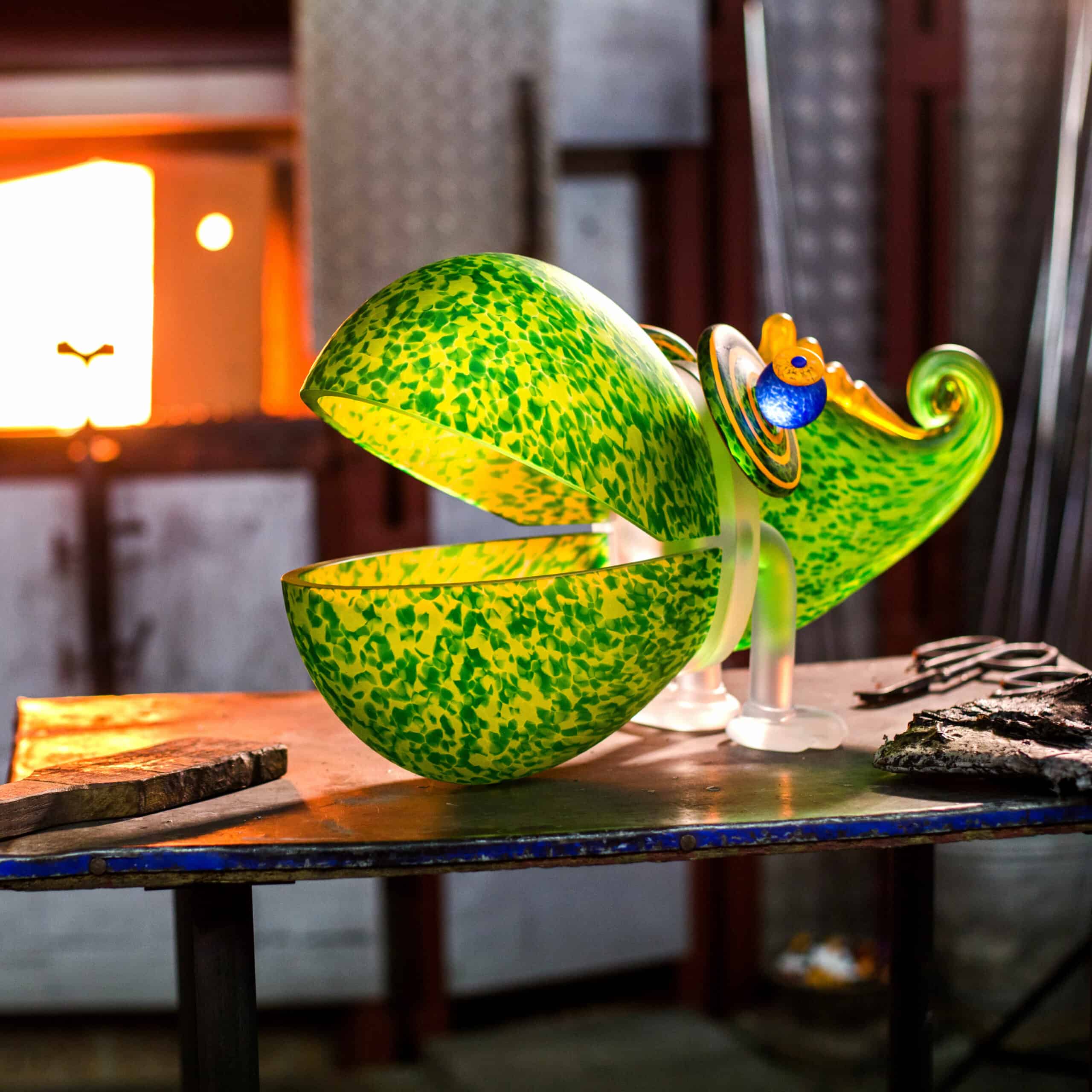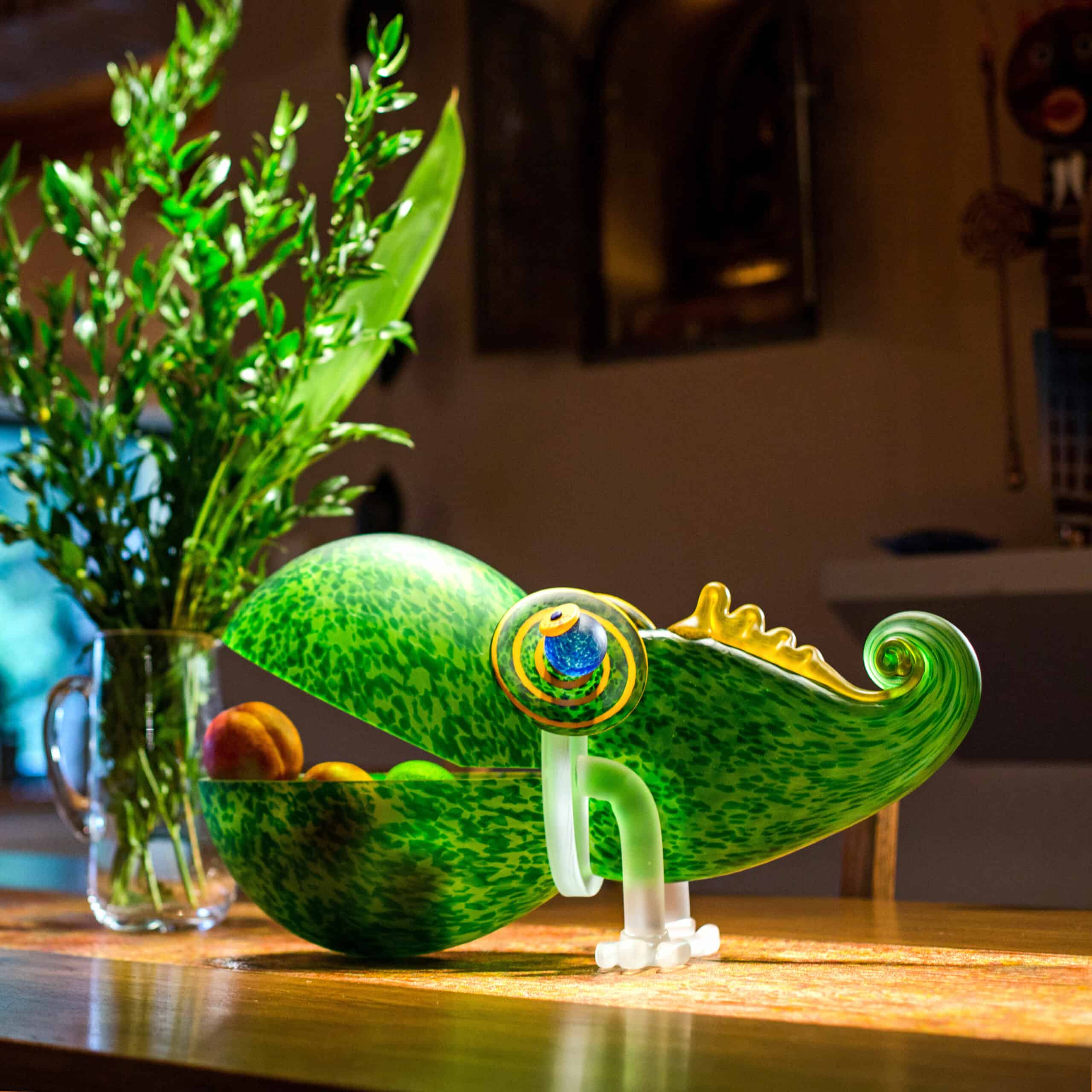 Das große Chamäleon – Glasskulptur und Schale