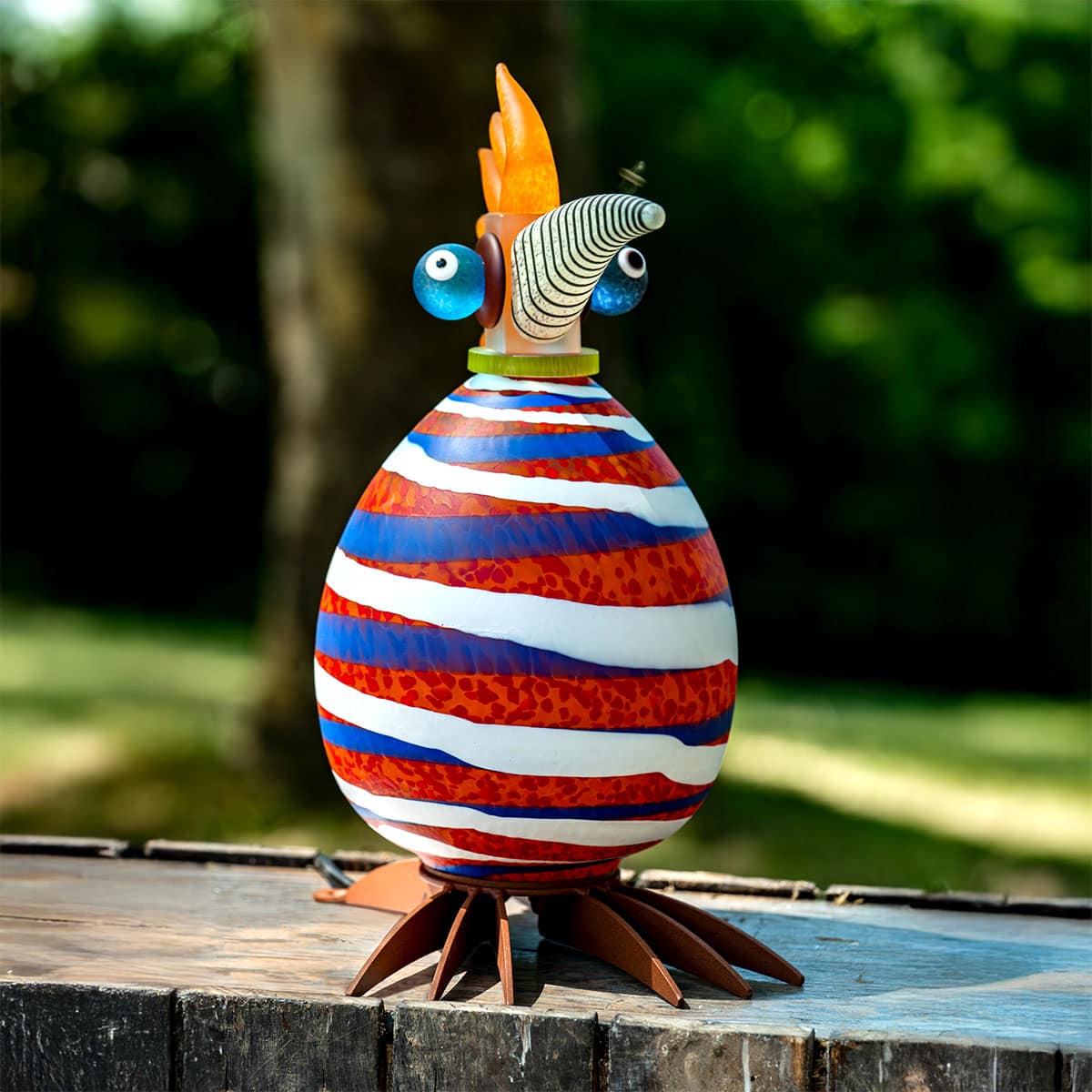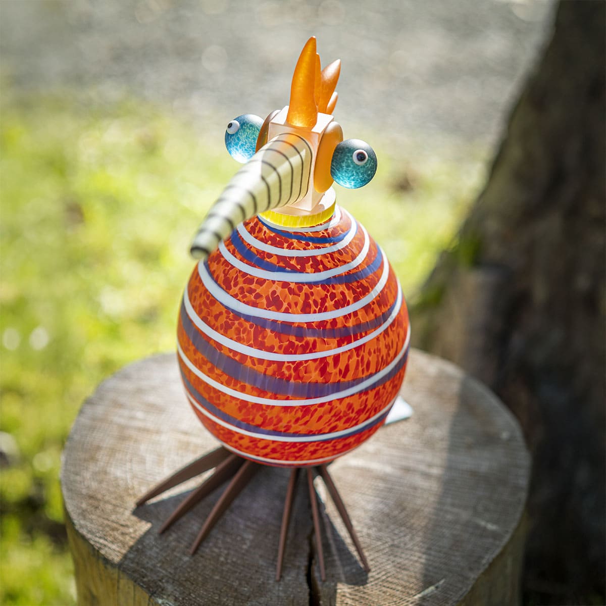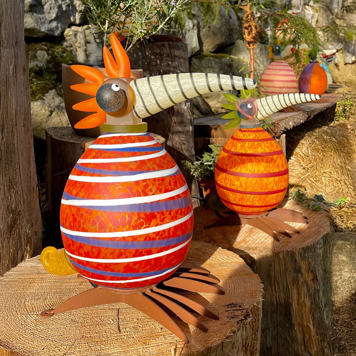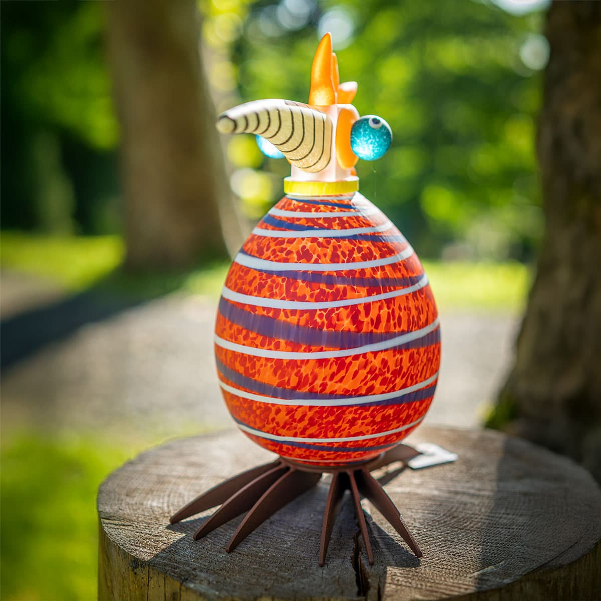 Die OUTDOOR OBJECTS sind witterungsbeständig und können das gesamte Jahr über im Freien stehen. Sie sind allesamt sorgsam von Hand gefertigte und mundgeblasene Kunstobjekte.