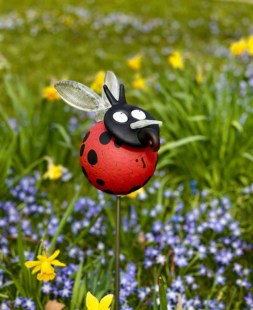 Der liebenswerte rote Marienkäfer mit Schnurrbart ist ein charmanter Eyecatcher, der Frühlingsflair in Ihren Garten zaubert. Alleine oder zusammen mit seiner Freundin BUZZ ON STICK wippt er leise im Wind und lädt zum Träumen ein.