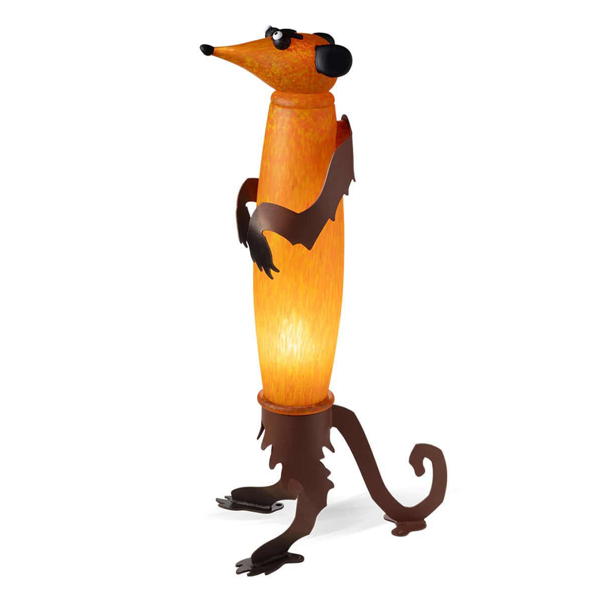 Das Erdmännchen trägt seinen Namen nicht zufällig. Es stellt sich auf die Hinterbeine, verschafft sich Überblick – und sieht dabei verblüffend menschlich aus. Ein bisschen Wächter. Ein bisschen Nachbar oder neugieriger Zeitgenosse. Dieser wachsame Blick kommt uns verdächtig bekannt vor – ungefähr so schauen wir, wenn der Bus schon wieder zu spät ist. Genau diese Haltung und Mimik wurde von unseren Künstlern in Glas eingefangen: NELSON, eine kleine, ernsthafte Persönlichkeit mit Herz – aufmerksam, sozial und so menschlich, dass man sich ihr sofort verbunden fühlt.