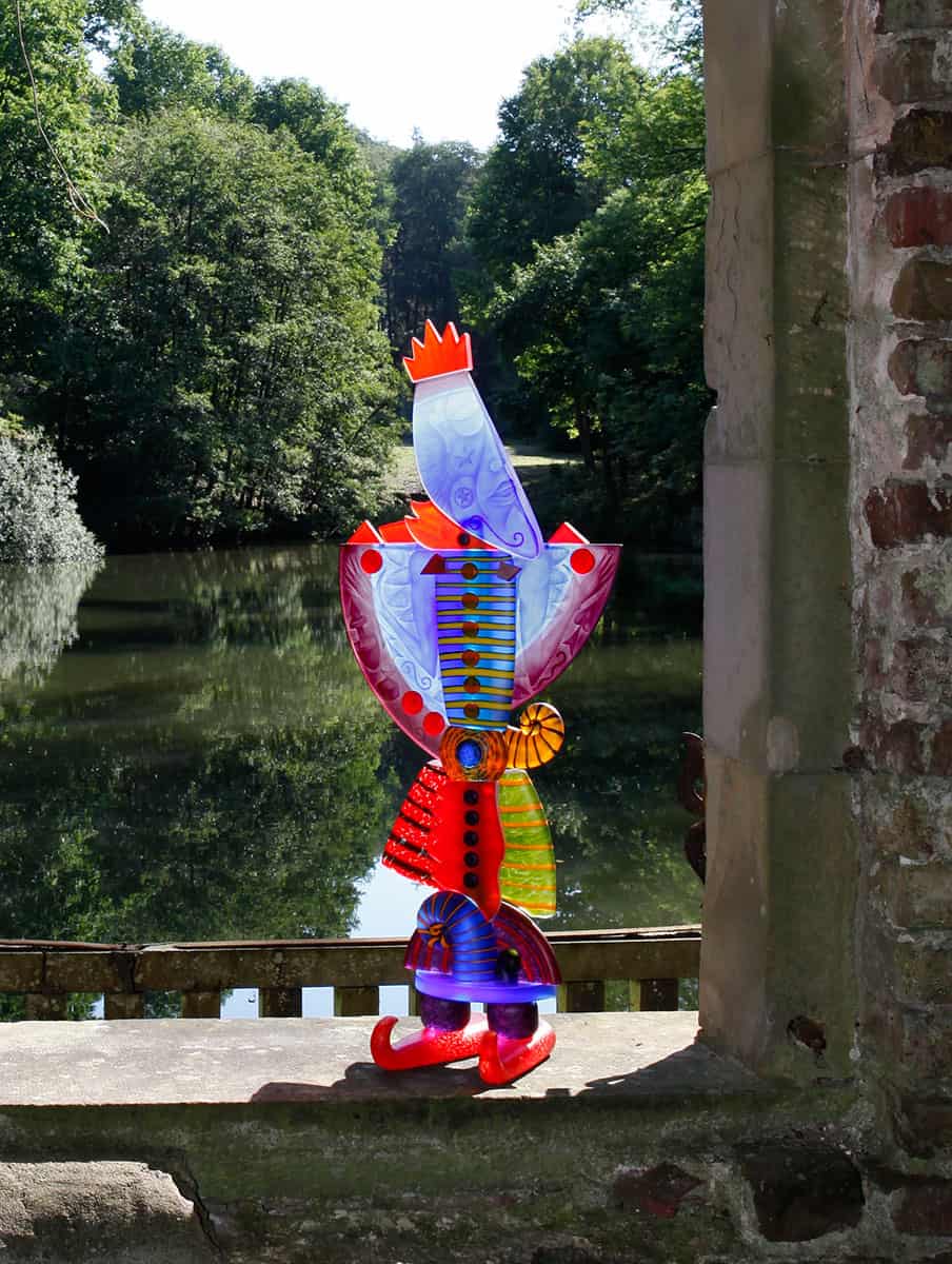 Ein wahrhaft prächtiger Kerl: Aufwendig gearbeitet, von brillanter Farbigkeit und besonderer Eleganz. Fast alles was die Glaskunst an Technik zu bieten hat, wird hier in vielen Einzelteilen perfekt gezeigt.