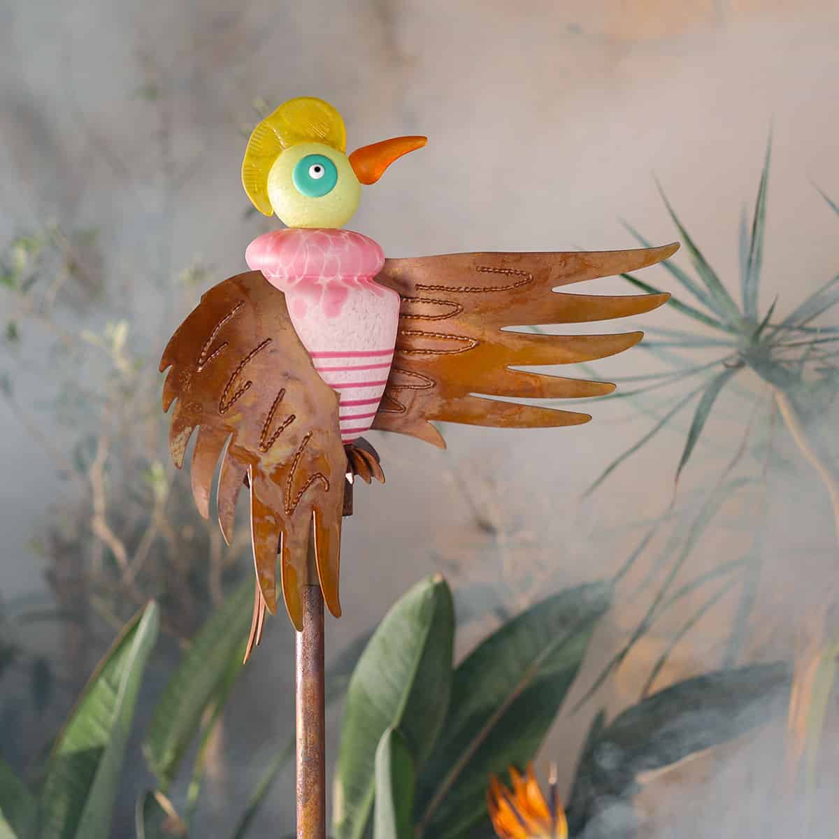 Im Vergleich zu MAVERICK mag SKYLER aufgrund des kürzeren Schnabels, des Kopfschmucks und der Rundungen im Glaskörper etwas femininer auf den Betrachter wirken. Er hat kein reales Vorbild und ist allein der Fantasie unserer Glaskünstler entsprungen. Diese Kreativität versprüht der originelle Windvogel an jedem Ort, wo Sie ihn aufstellen. Verleihen Sie Ihrem Garten oder Balkon eine einzigartige und fantasievoll Note!