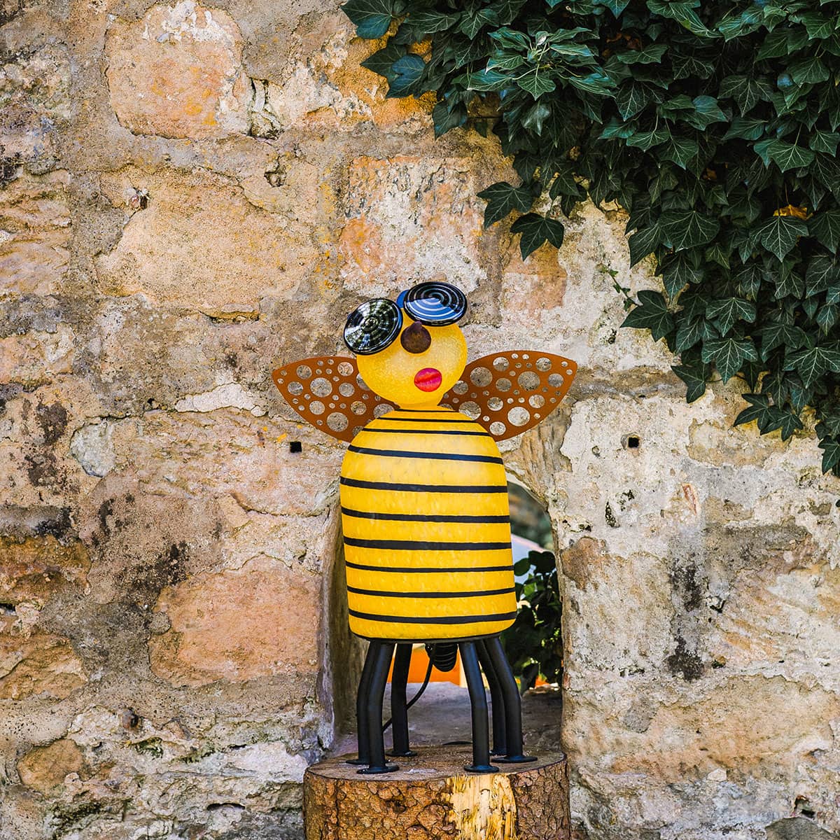 Die freche Licht-Biene SUZY BEE mit ausgeprägtem Kussmund entlockt wohl jedem ein Schmunzeln und verzaubert die dunkelste Ecke im Garten. Von einer Blume zur nächsten summend, ist diese geschäftige Biene voll strahlendem Licht, das laue Sommerabende und kalte Wintertage erleuchtet. SUZY BEE wurde sorgfältig hergestellt, um außergewöhnliche Qualität und Freude zu liefern.