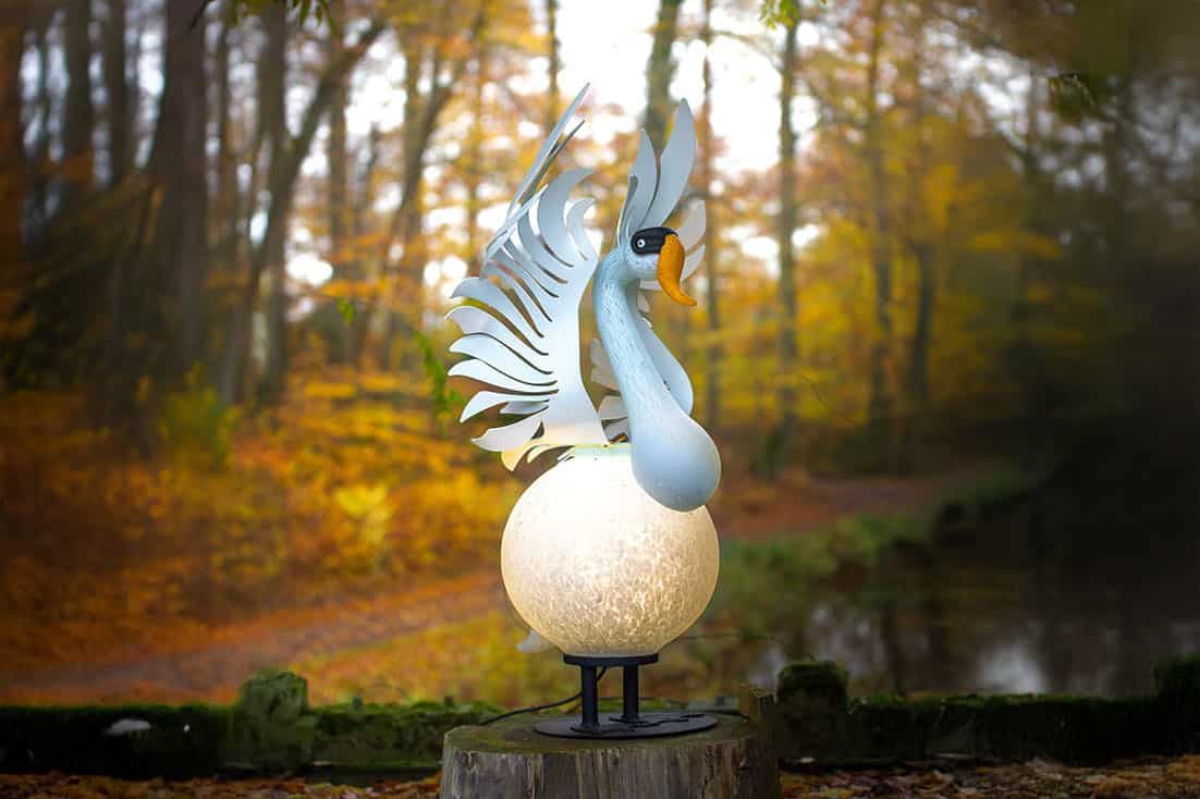 In the rich palette of autumn, our white swan HEKTOR draws every gaze. Its gentle light creates a calm contrast to the warm tones of the forest and lends the scene a serene, almost dreamlike atmosphere. It embodies grace and tranquility – transporting its observers into a fairytale setting.