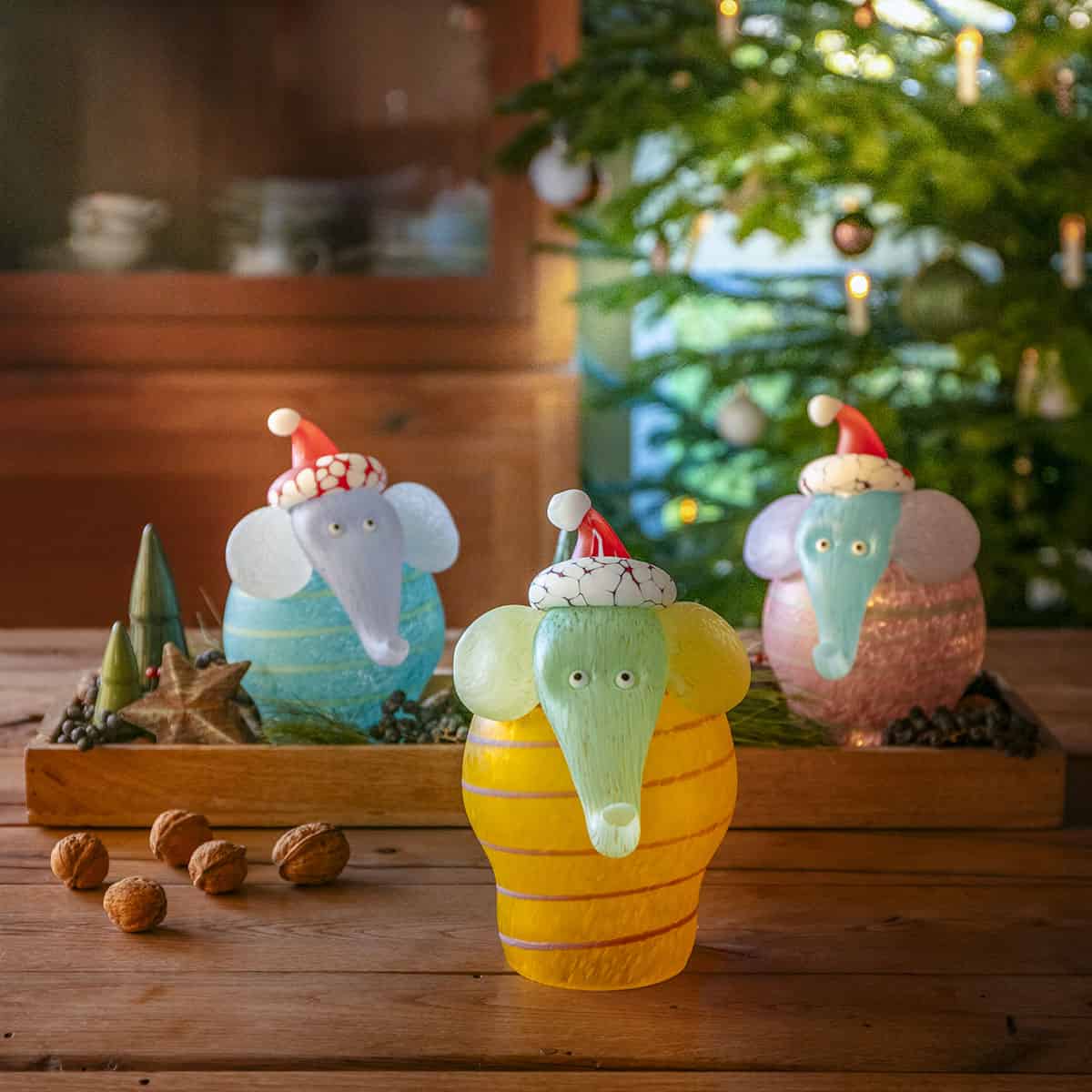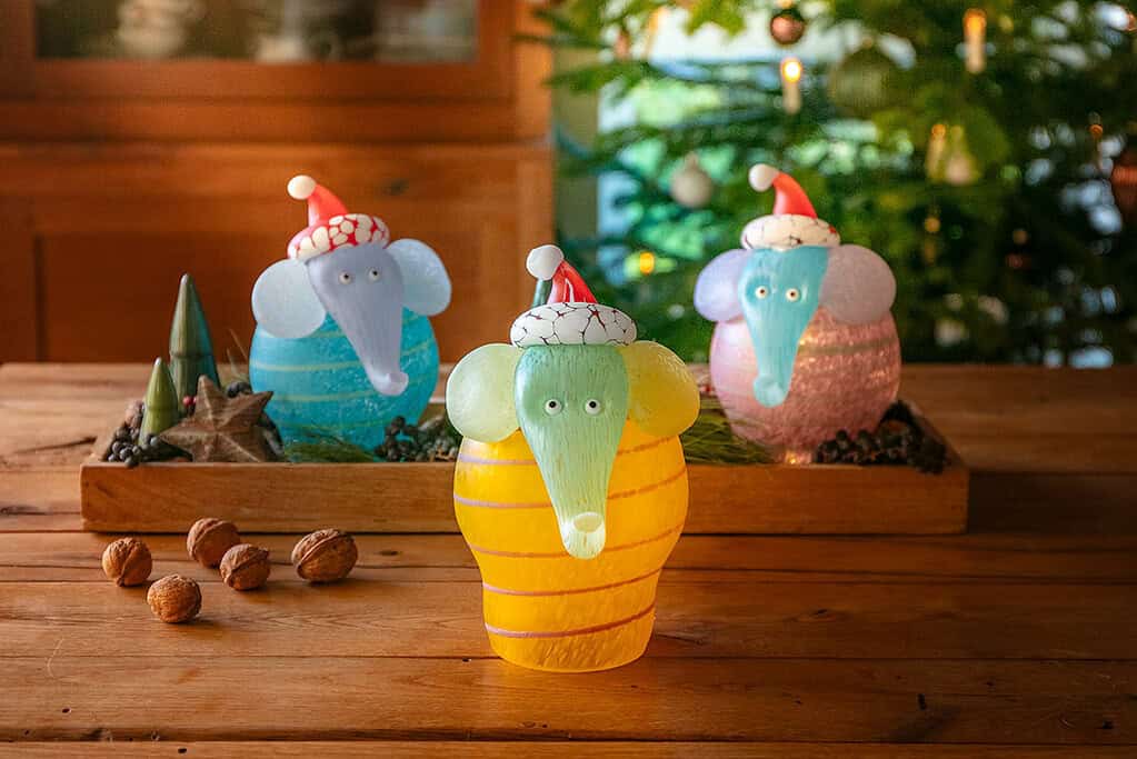 In many cultures, elephants represent wisdom, happiness and peace. Or maybe the little elephant helps Santa Claus to hand out the presents in faraway countries. Give this irresistible glass elephant as a gift, which will win every heart with its innocent look. CHRISTMAS JUMBO is 21 cm high and can be illuminated with an LED tea light or a chain of lights thanks to an opening on the bottom. A meaningful gift with a calm, understated presence for the festive season.