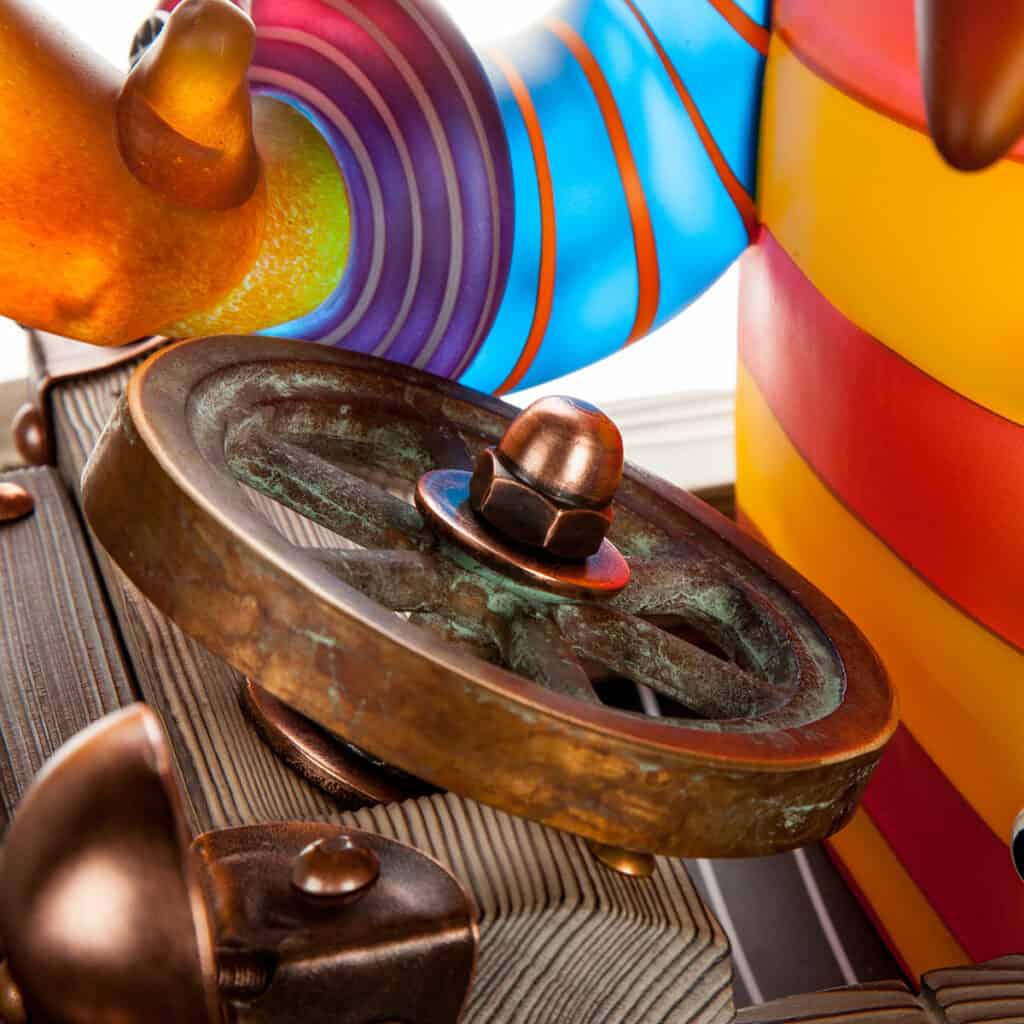 Pate de Verre, mundgeblasenes Glas, konserviertes Holz, Stahl