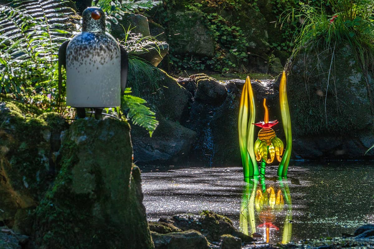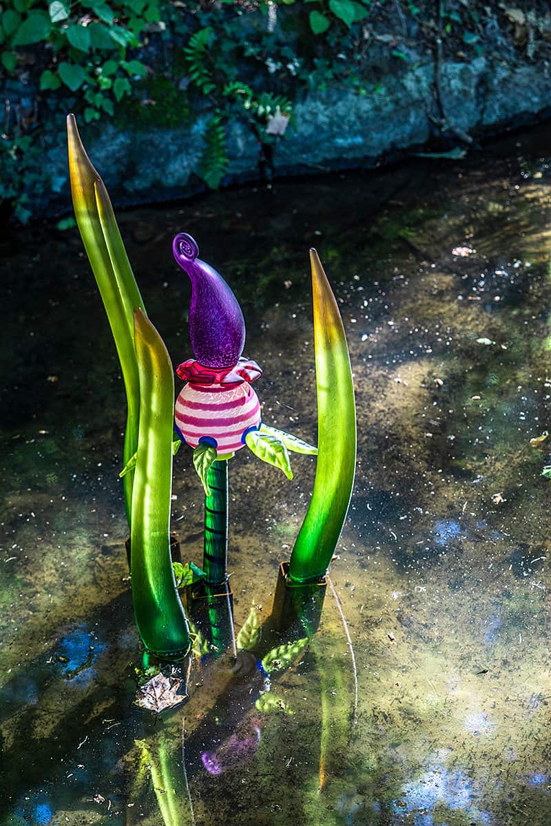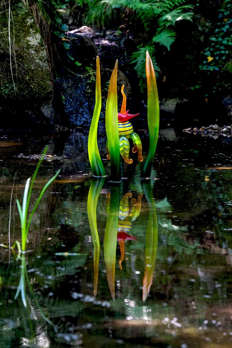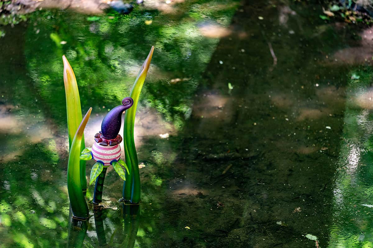 Die schlanken Glasformen erinnern an Schilf, Flammen oder organische Wesen. Je nach Licht wirken sie ruhig oder intensiv, fast lebendig. In Bewegung kommt nur ihre Umgebung – Wasser, Wind, Spiegelungen. Genau daraus entsteht ihre Spannung.