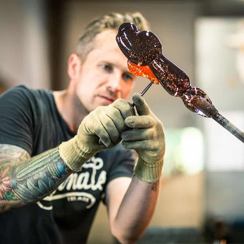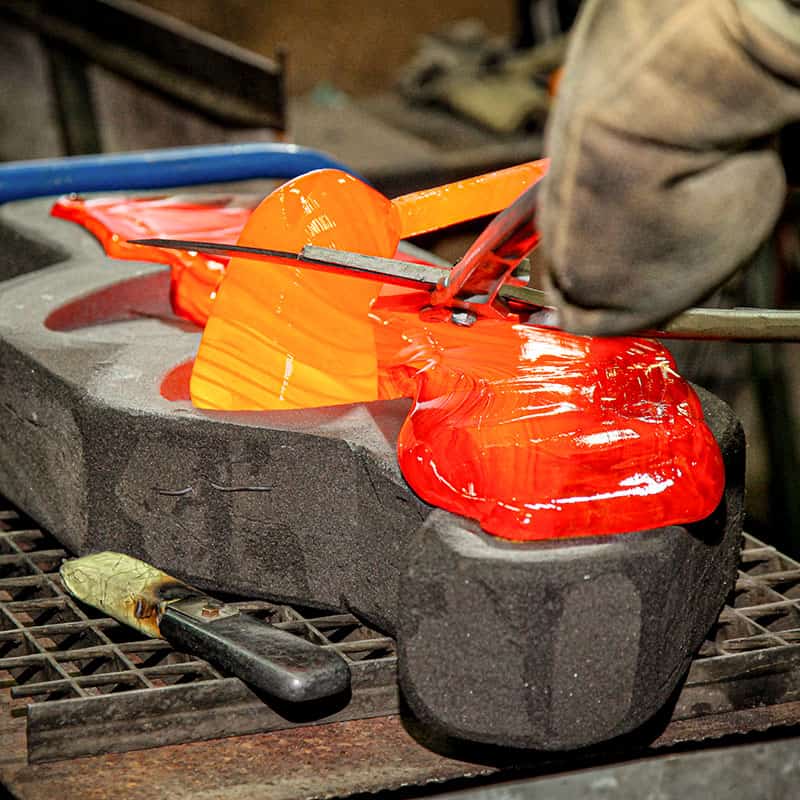 In unserer Manufaktur treffen jahrhundertealte Techniken auf künstlerische Neugier. Am glühenden Ofen und im präzisen Schliff entsteht Glas, das nicht nur Form annimmt, sondern Seele bekommt. So verwandeln wir kreative Visionen in Objekte, die berühren und begeistern.